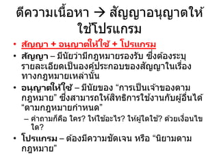 • ทาให้โปรแกรมนั้นเป็นซอฟต์แวร์เสรีซึ่งทุก ๆ คนสามารถ