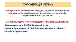 ОСНОВНІ ЗАДАЧІ ПРИ ПРОВЕДЕННІ АУСКУЛЬТАЦІЇ ЛЕГЕНЬ:
