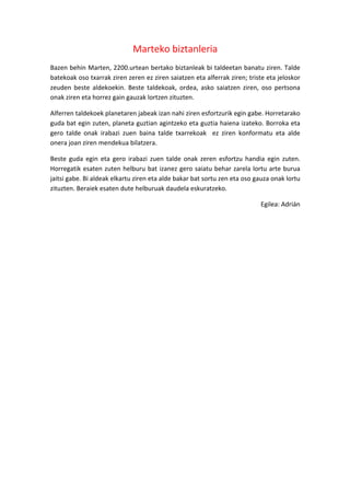 Bazen behin Marten, 2200.urtean bertako biztanleak bi taldeetan banatu ziren. Talde