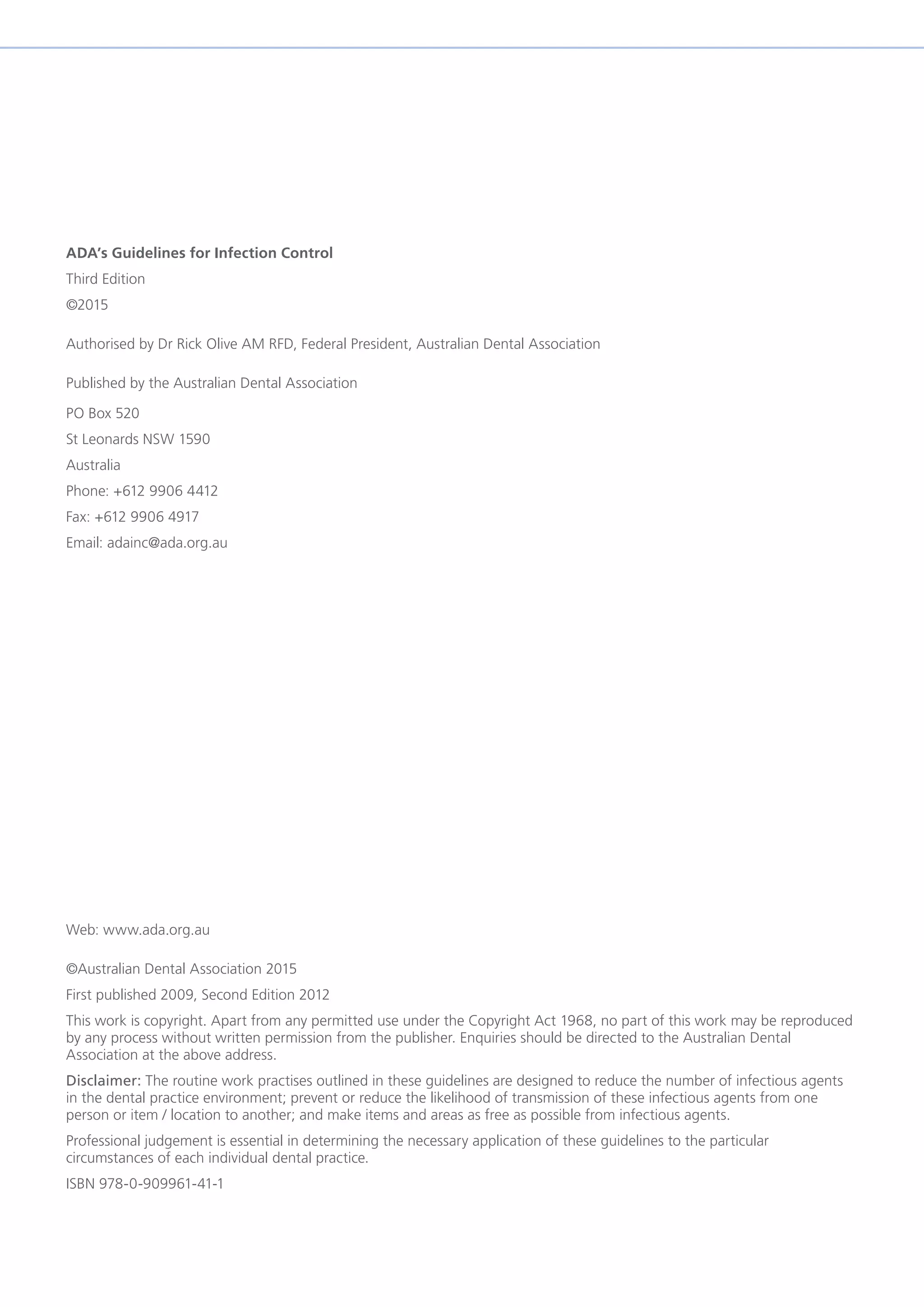 This document provides guidelines for infection control in dental practice. It outlines responsibilities and procedures to prevent transmission of infectious agents. Key aspects covered include standard precautions, instrument reprocessing, documentation, special areas, and infectious diseases. The guidelines are intended to reduce infectious agents and prevent transmission based on best practice evidence and standards. Professional judgement is important when applying the guidelines to individual practice circumstances.