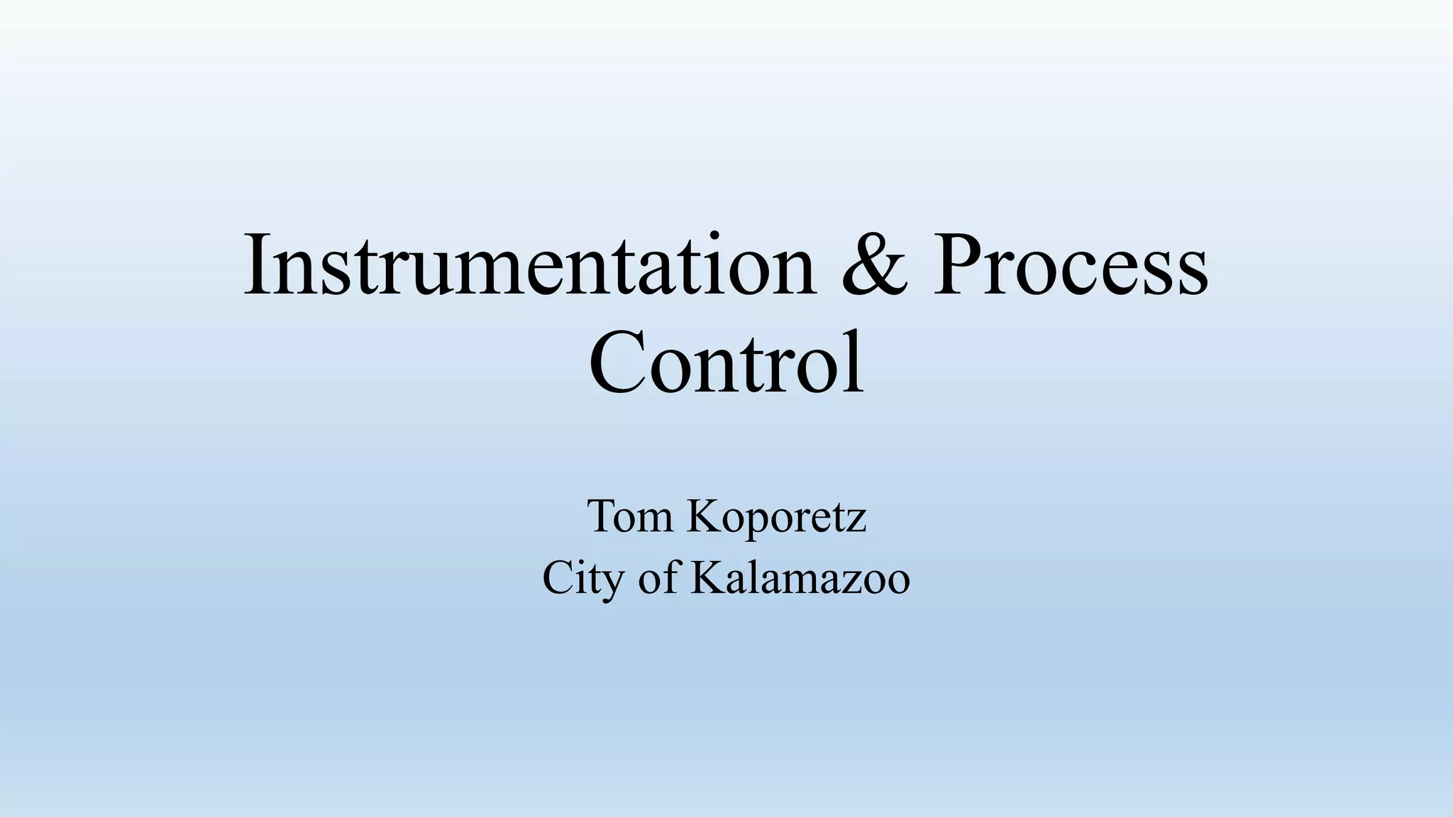 This document discusses instrumentation and process control. It covers five main processes that are commonly controlled: temperature, pressure, flow, level, and composition. For each process it discusses the types of sensors used to measure the process variable as well as common engineering units. It also provides examples of how these processes are controlled in applications like engines. The document emphasizes the importance of proper instrument installation and configuration to avoid errors in measurement. It recommends validation of instrumentation and control schemes to ensure accurate data and system operation.