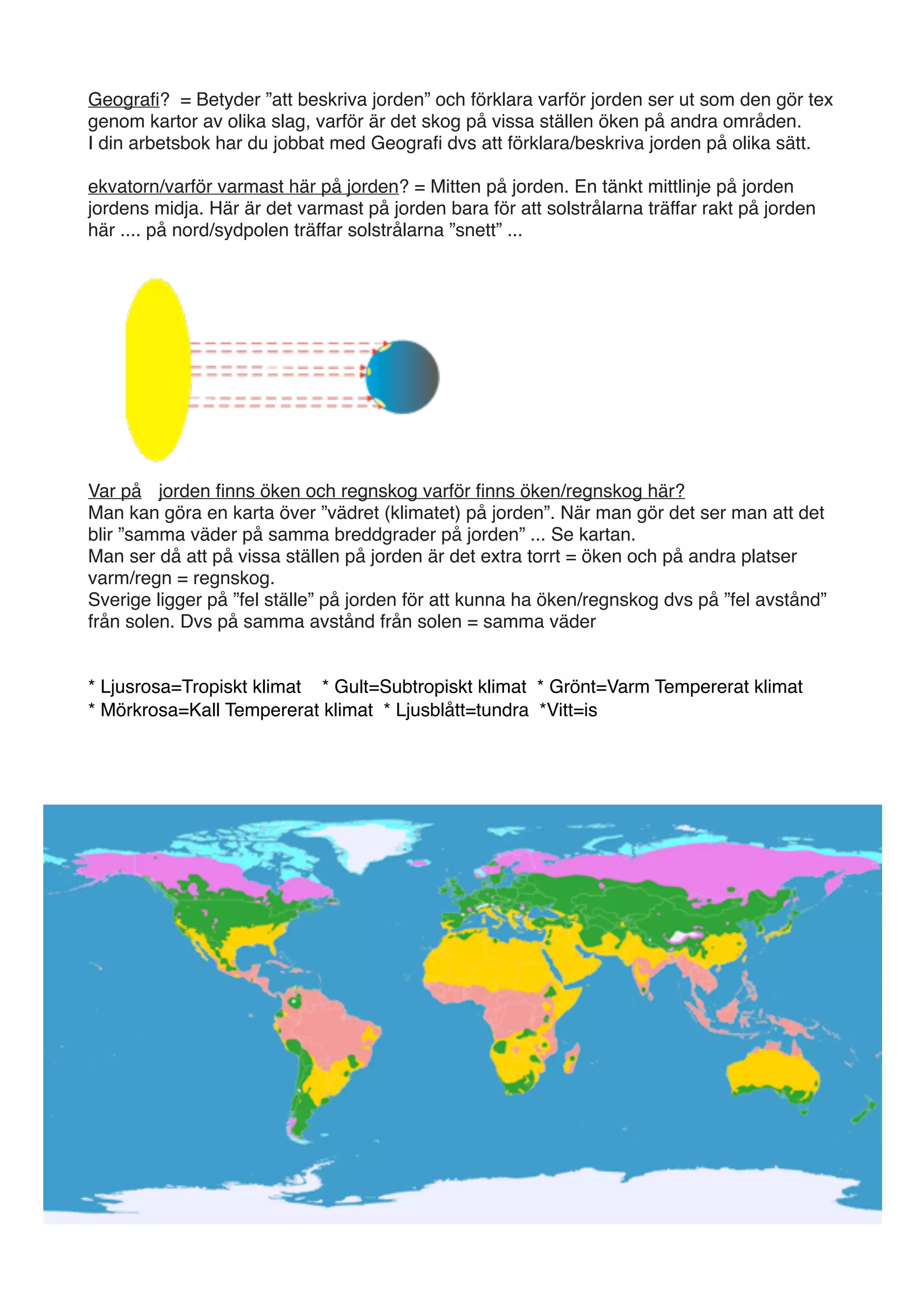 Man ser då att på vissa ställen på jorden är det extra torrt = öken och på andra platser