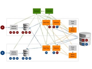 The document outlines the features and developments of the Redborder Flow Carrier Grade Flow Collector, highlighting its support for various protocols like NetFlow and sFlow, along with enterprise capabilities such as upgrades and clustering. It discusses product advancements over the years, including performance enhancements and the introduction of a correlation engine. Additionally, it provides contact information and references upcoming events and launches related to the technology.