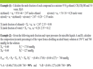 Distillation is a process that separates liquids with different boiling points by heating a liquid mixture and collecting the vapor of the more volatile components. It works based on the principle that the vapor pressure of a component in a mixture depends on its mole fraction. Distillation is used to purify liquids and separate components by taking advantage of differences in boiling points, with common applications including separating crude oil, purifying water, and producing distilled alcoholic beverages. There are different types of distillation that vary based on factors like the temperature range, differences in boiling points, and use of vacuum or steam.