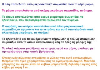 Η ύλη αποτελείταιαπό μικροσκοπικά σωματίδια που τα λέμα μόρια.