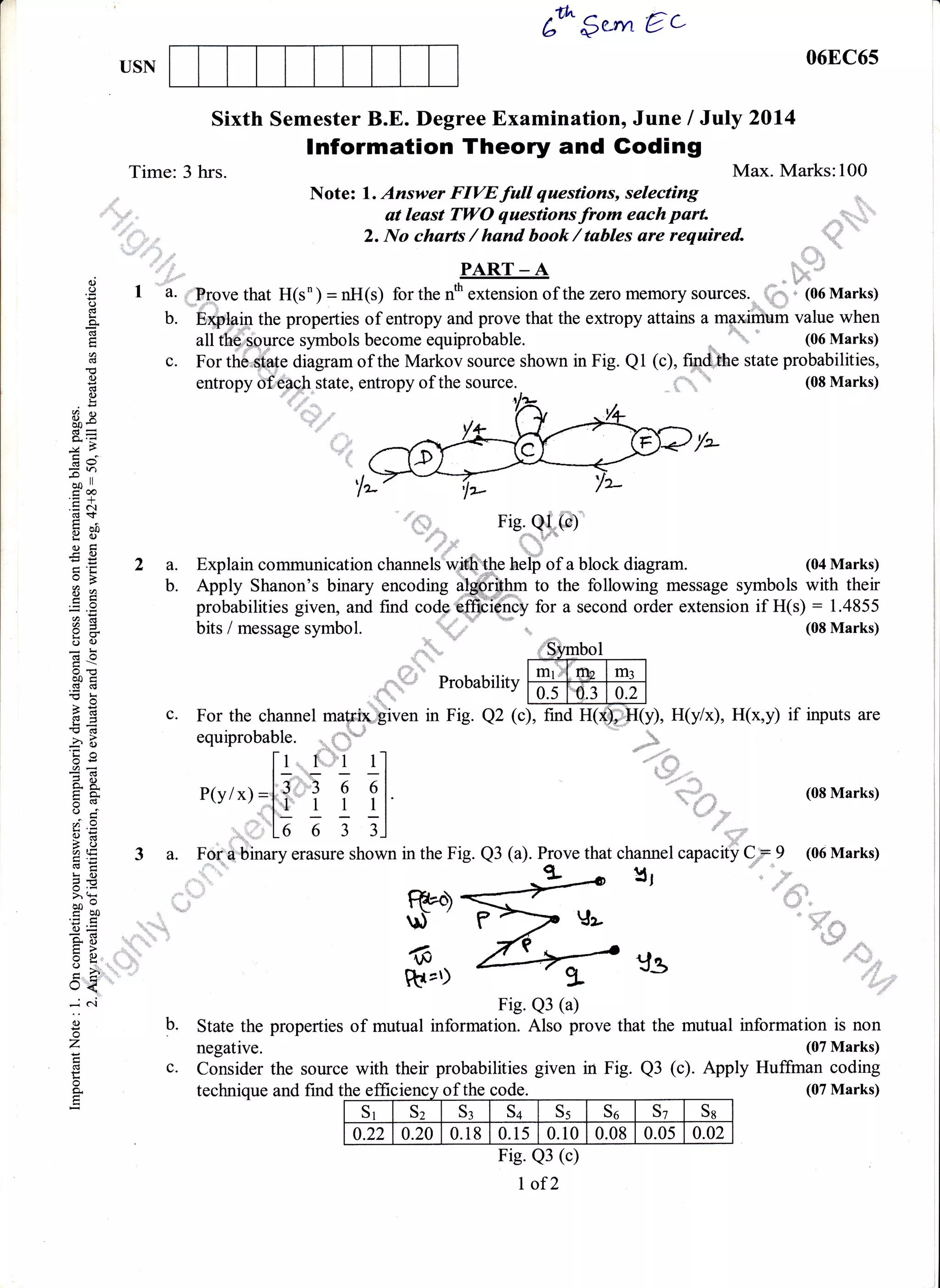 This document contains questions pertaining to information theory, coding theory, digital communication, and microprocessors.