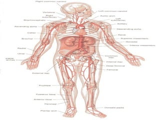 The document provides an overview of human anatomy and physiology, with a focus on the respiratory and circulatory systems. It defines anatomy and physiology, describes anatomical terms and positions, and reviews the key structures and functions of the skeletal, respiratory, and circulatory systems. The respiratory system section examines the upper airway, lower airway, gas exchange, and respiratory evaluation. The circulatory system section states its overall function of nutrient/oxygen transport and waste removal.