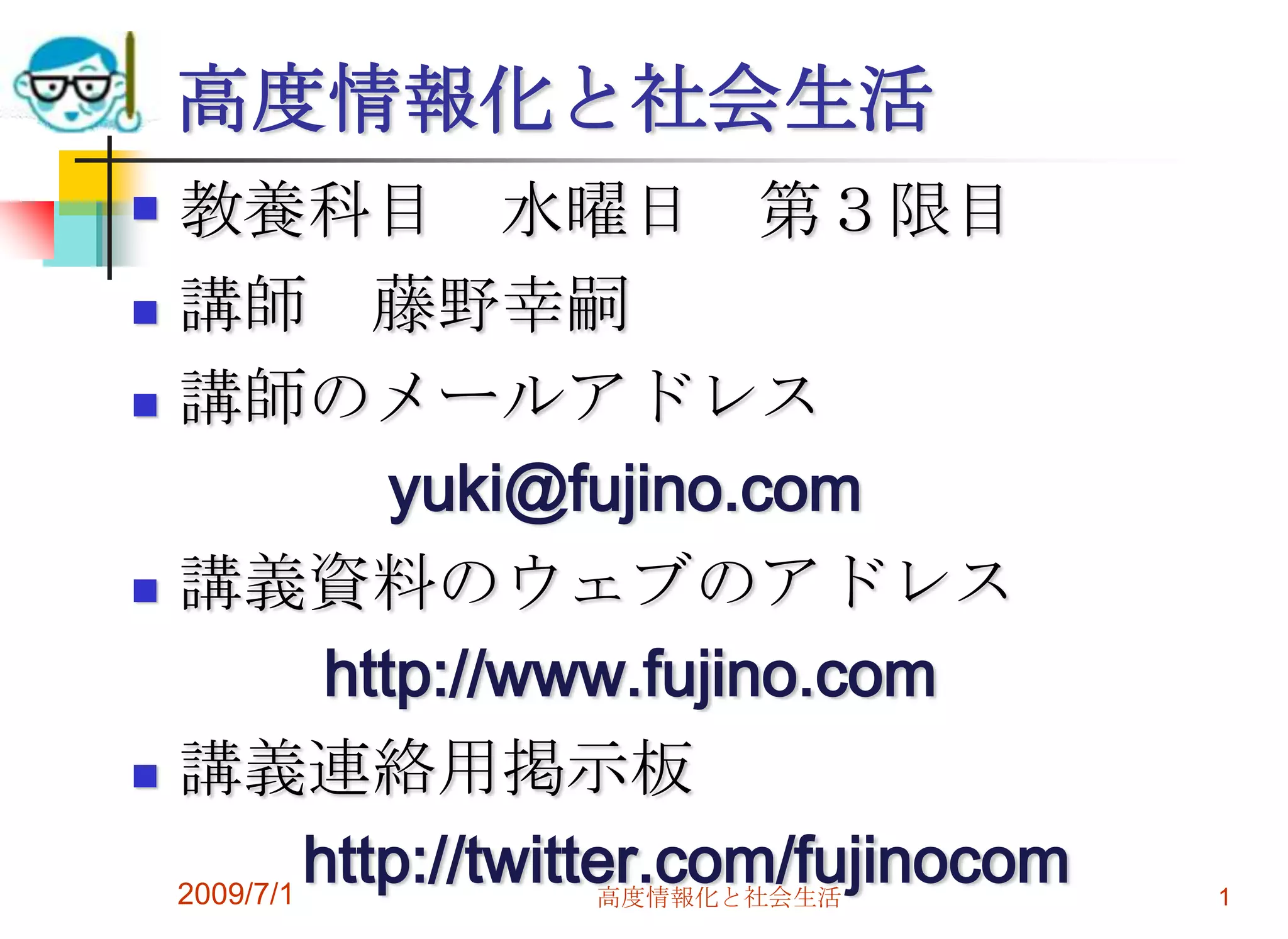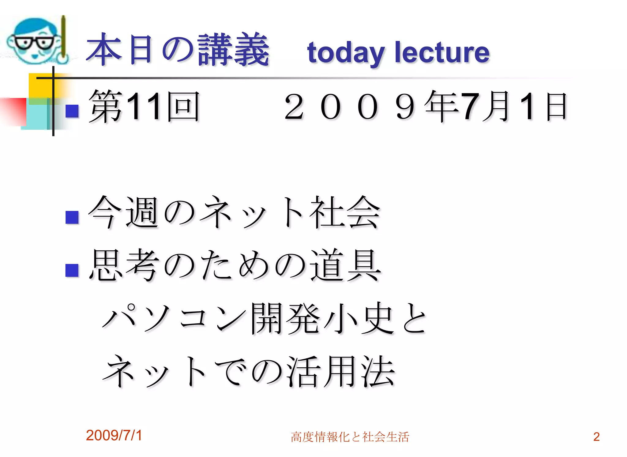 2009/7/1高度情報化と社会生活106次回の講義予定7月8日インターネットのビジネス利用について