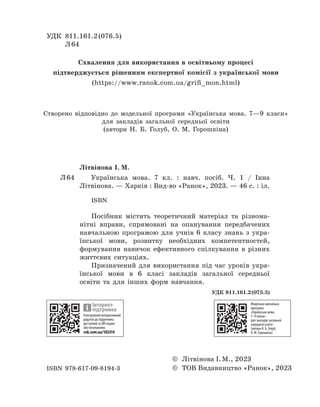 «Українська мова» навчальний посібник для 7 класу закладів загальної середньої освіти. Частина 1 (авт. Літвінова І. М.).pdf
