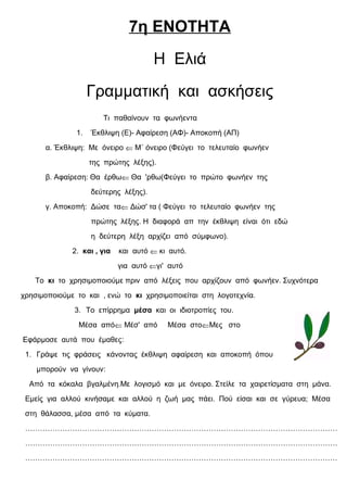 1. Γράψε τις φράσεις κάνοντας έκθλιψη αφαίρεση και αποκοπή όπου