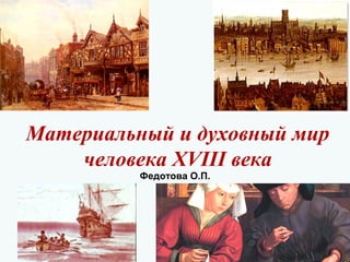 Документ описывает изменения в материальном и духовном мире человека XVIII века, акцентируя внимание на просвещении и секуляризации сознания. Он рассматривает рост городского населения и развитие индустриального общества, включая важность личной ответственности и предпринимательства. Также упоминаются изменения в социальных структурах и возможность социального восхождения для выходцев из крестьянского и ремесленного сословия.
