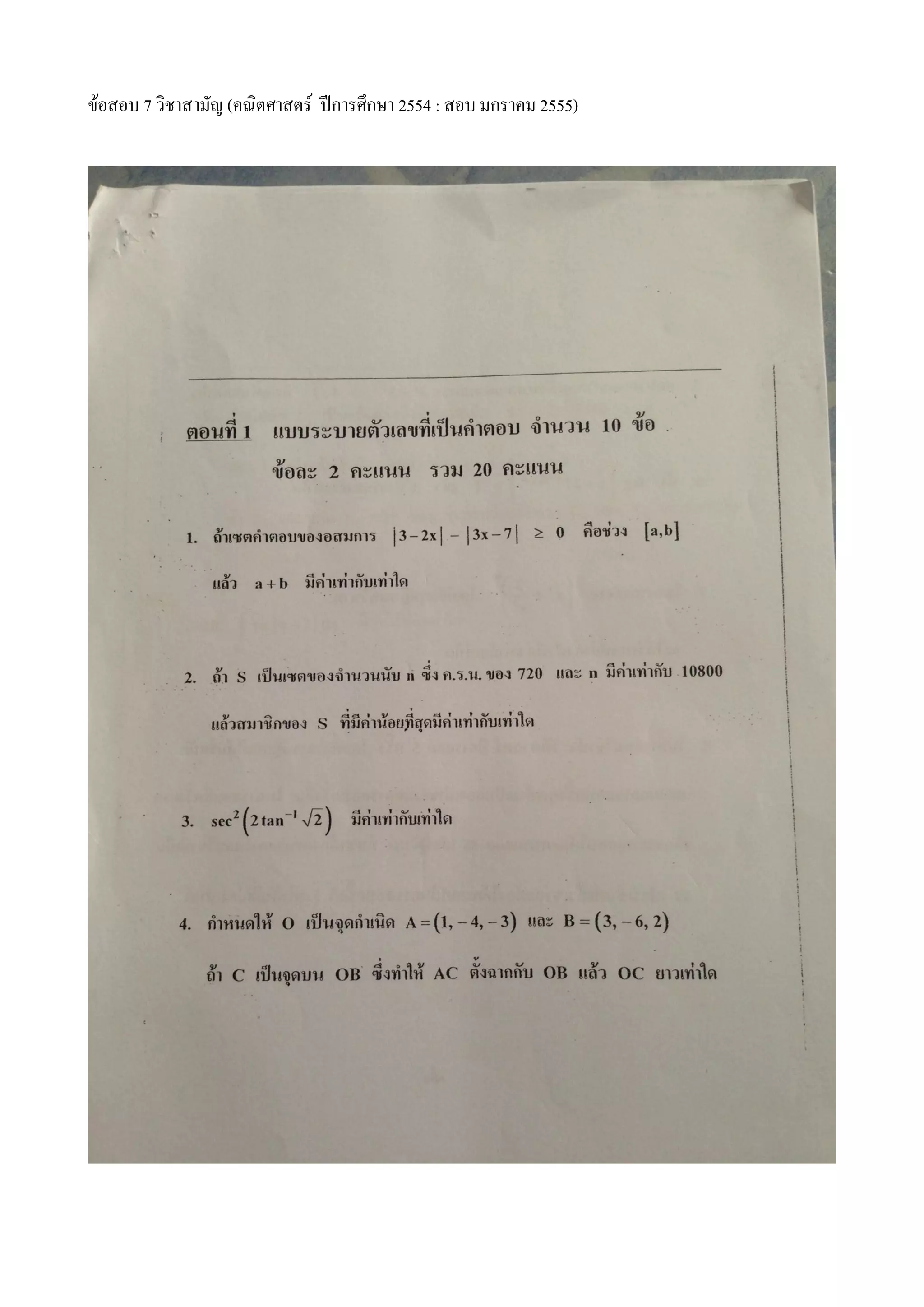 (คณิตศาสตร์ ปีการศึกษา 2554 : สอบ มกราคม 2555)