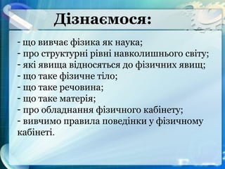 - що вивчаєфізика як наука;