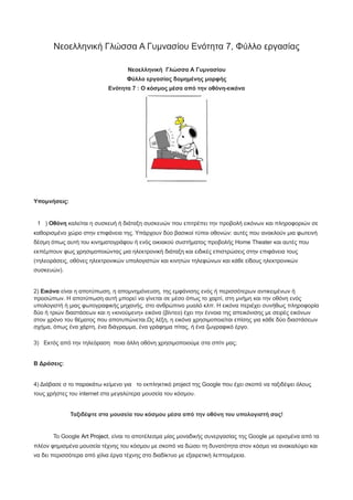 Ενότητα 7 : Ο κόσμος μέσα από την οθόνη-εικόνα