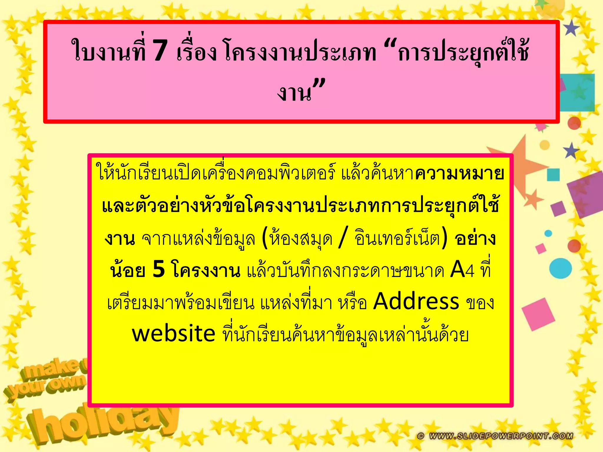 ใบงานที่ 7 เรื่อง โครงงานประเภท การประยุกต์ใช้งาน PPTX