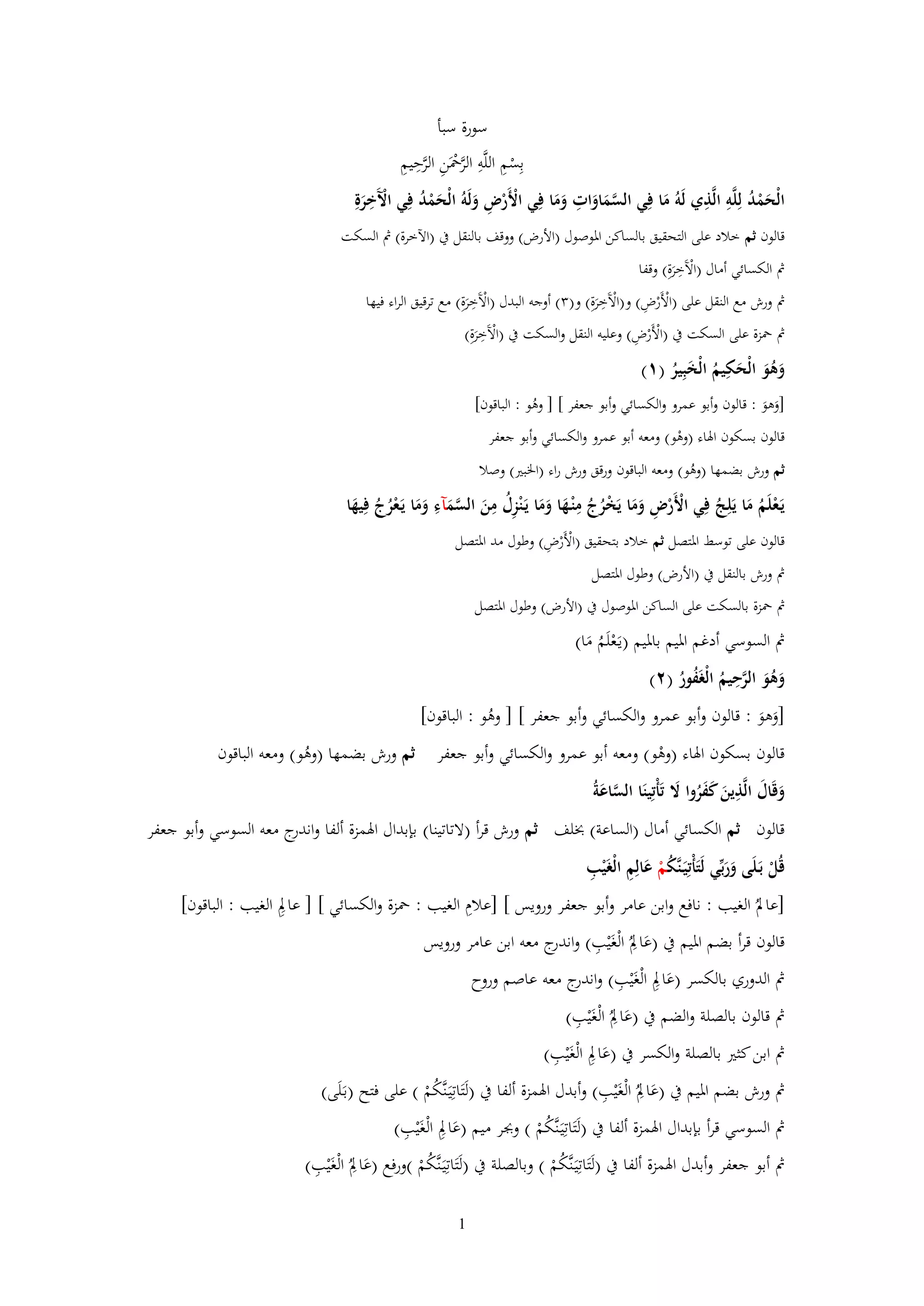 ٍب ْحزة بتشديد السُت وادليم (يَسمعوف) وبالسكت ُب (األَعلَى) واإلمالة ُب (األَعلَى)