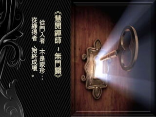 文档探讨了人际关系、道德修养和内心平和的重要性,强调个人的智慧和内心力量在逆境中的提升。通过引用经典教义,文中传达了修身齐家的理念,以及如何在众多压力和欲望中寻求内心的宁静与觉悟。最终,强调修心和修德的必要性,以达到人生的真正幸福与和谐。