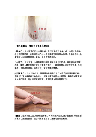 文章介紹了根據中醫理論,春季減重應先養肝以促進氣血循環和新陳代謝。採用七個主要穴位進行按摩能有效提高身體的代謝能力、促進腸胃蠕動並減少便祕,增強減重效果。文章提供了每個穴位的具體位置和按摩效果,以便讀者實施。