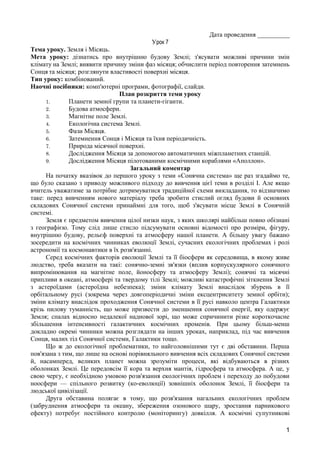 внутрішню будову, рельєф поверхні та атмосферу нашої планети. А більшу увагу бажано