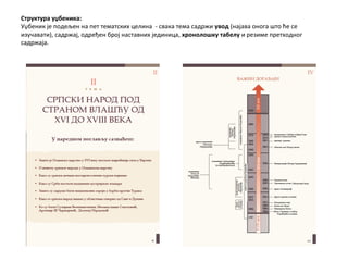 изучавати), садржај, одређен број наставних јединица, хронолошку табелу и резиме претходног