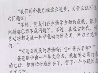文档探讨了环境保护的重要性,包括乱丢垃圾、露天焚烧、过度使用农药、非法猎杀和过度砍伐等行为对生态的破坏。还涉及了科幻和历史故事的教育意义,以及对人物角色和情节的理解。通过生活实例,强调了角色性格特征和心理变化的讨论。