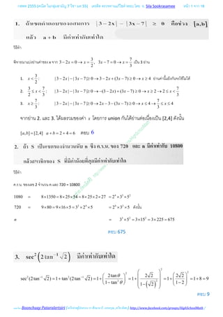 กสพท 2555 (คณิตในกลุมสามัญ 7 วิชา มค 55) เครดิต ตรวจทานแกไขคําตอบ โดย อ. Sila Sookrasamee หนา 2 จาก 18