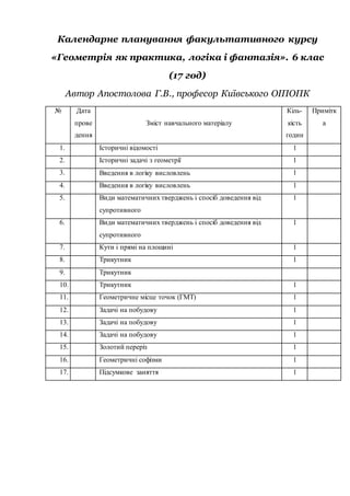Календарне планування факультативногокурсу