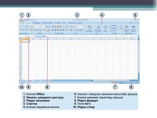 • Робочийлистів робочої книги являє собою вікно, що містить