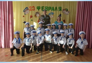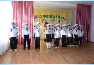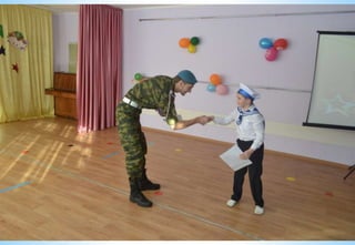 Документ описывает праздник для пап, проходящий в вечернее время с атмосферой отдыха и веселья. В программе мероприятия участвуют дети, которые показывают песни, стихи и организуют игры и конкурсы для пап. Завершением праздника становится неожиданное событие-сюрприз для отцов.