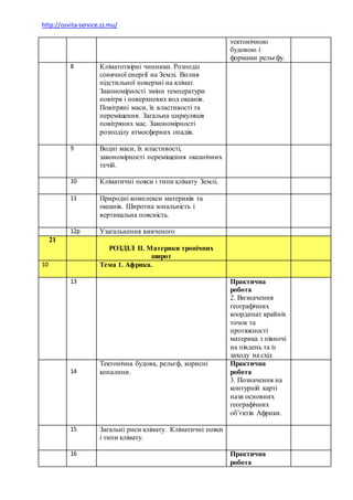 Календарні плани географія7 клас