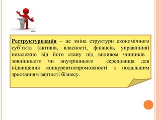 Реструктуризація – цезміна структури економічного