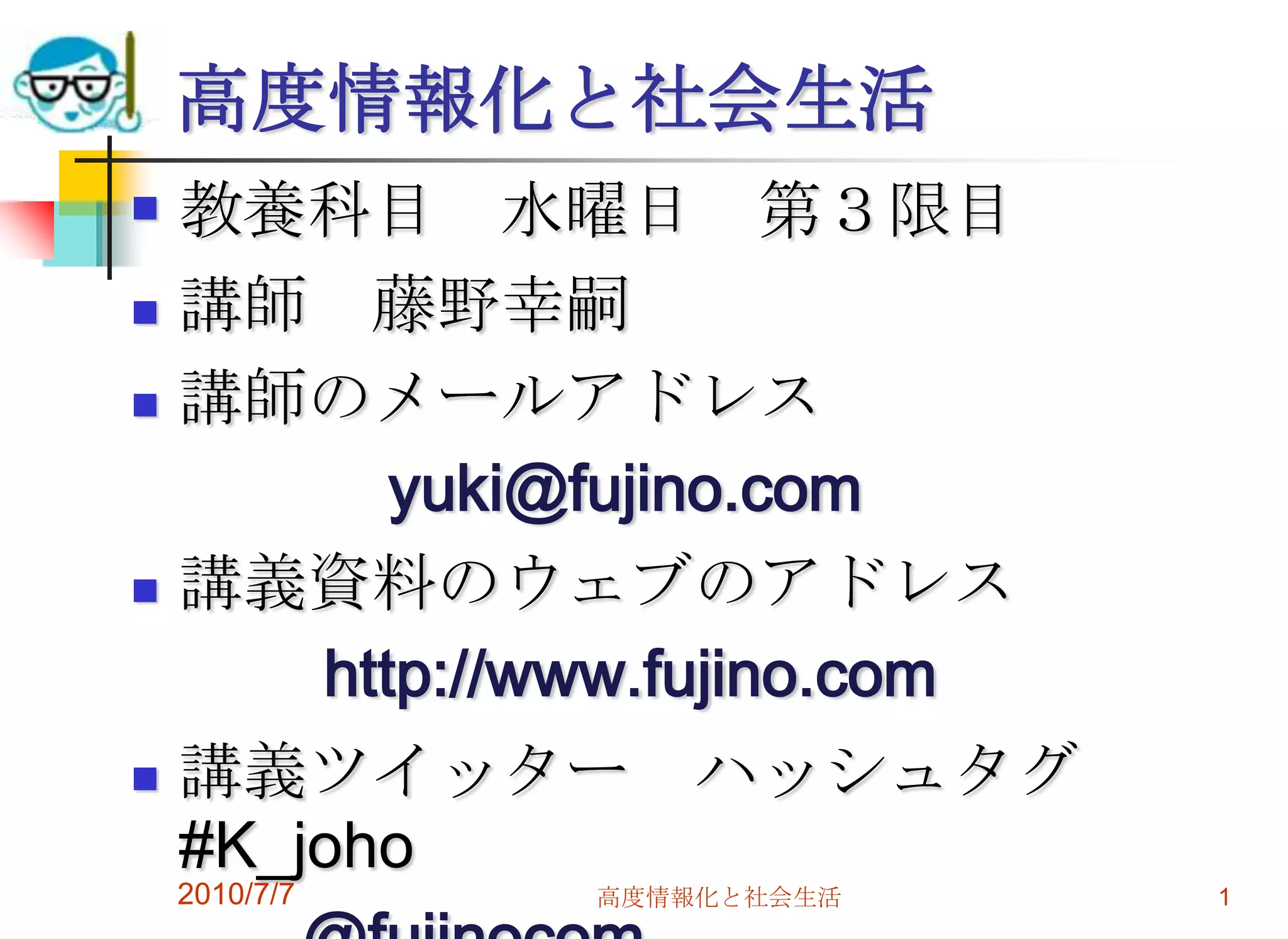 2010/7/7 高度情報化と社会生活 1