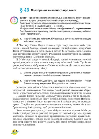 Зміст вправ, які вміщені на сторінках підручника, охоплює такі теми: