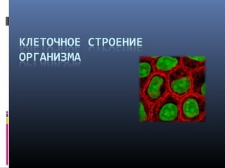Документ описывает строение и функции клеток, включая их разнообразие и основные части, такие как клеточная мембрана, ядро и органоиды. Упоминаются ключевые процессы, которые клетки осуществляют, такие как обмен веществ, рост и размножение. Также рассматриваются отличия между растительными и животными клетками.