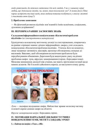 повідомлення «Косметичніпроблемипідлітків». Учитель його не коментує,