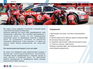 Документ представляет собой пошаговое руководство по внедрению agile-подхода в маркетинговые команды, предлагая семь ключевых шагов для повышения продуктивности и адаптивности. Основное внимание уделяется важности гибкости, быстрой реакции на изменения и взаимодействия с клиентами для успешного маркетинга в цифровую эпоху. В документе также обсуждаются трудности внедрения agile и способы их преодоления через постепенные изменения и вовлечение команды.