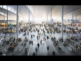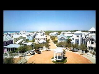 The document summarizes key themes and ideas from an architecture course, including globalization, urbanization, transnational networks, agglomeration, sustainability, and a sense of place. It discusses how individual buildings and complexes are increasingly used as spectacles to promote cities globally and how urban space is contested and privatized.