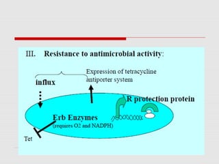 This document summarizes broad spectrum antibiotics tetracyclines and chloramphenicol. It describes the classification, mechanisms of action, antimicrobial spectrum, resistance, pharmacokinetics, adverse effects and therapeutic uses of tetracyclines. It also summarizes the mechanism of action, antimicrobial spectrum, resistance, pharmacokinetics, adverse effects and therapeutic uses of chloramphenicol. Both antibiotics are bacteriostatic, have broad spectra, can cause bone marrow toxicity and are enterohepatically circulated.