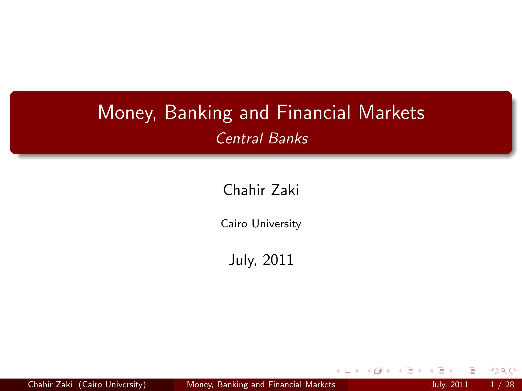 The document discusses central banks and monetary policy. It outlines the key tasks of central banks, which include issuing currency, implementing monetary policy, and maintaining price stability. Central bank independence is important for achieving price stability and low inflation. Central banks have various monetary policy instruments at their disposal, including reserve requirements, open market operations, and interest rates. The document then discusses these topics specifically regarding the Central Bank of Egypt, including its monetary policy objectives, interest rate decisions made by its Monetary Policy Committee, and its measures of inflation.