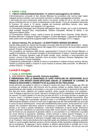 La rassegna stampa del PD di San Donato Milanese del 8 maggio 2013 evidenzia l'aumento dell'aliquota IMU per le seconde case, le nuove commissioni tecniche nominate dal comune e la crescente emergenza abitativa che affligge le famiglie a basso reddito. Viene inoltre segnalato un nuovo comitato di sostegno a Matteo Renzi e la pianificazione di una manifestazione per migliorare le infrastrutture ciclabili nel sudmilano. Il bilancio comunale è monitorato in relazione al rispetto del patto di stabilità, mentre si intensificano i controlli contro l'abusivismo commerciale nella zona della metropolitana.