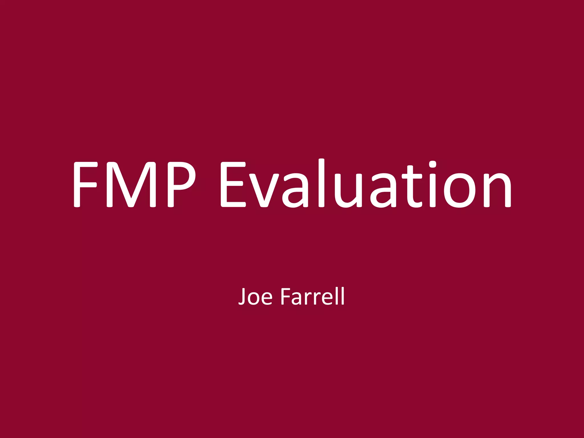 Joe Farrell created three loading screen designs for a horror game. He focused on research of glitches and bugs in games like FNAF. For planning, he created designs in Photoshop. Time management was an issue, as he spent too much on one design and had to rush other parts. The loading screen animation turned out well with fluid movement and separation of colors adding to the dark feel. Peer feedback praised the editing, colors, and sound effects, but noted the sound was loud and missing pieces. Joe agreed colors added to the horror but disagreed slowing it down was needed and aims to extend the animation length and visual effects.
