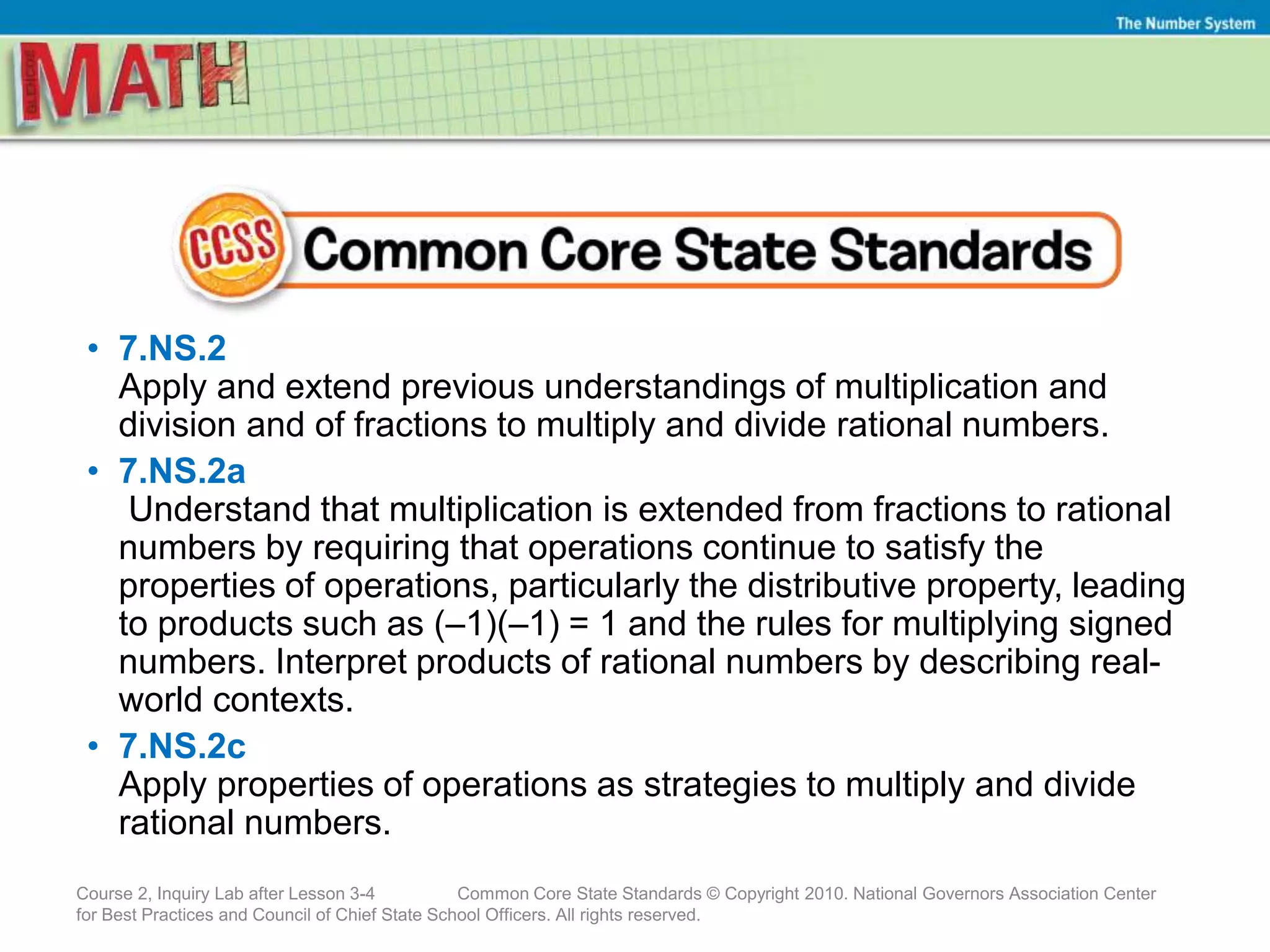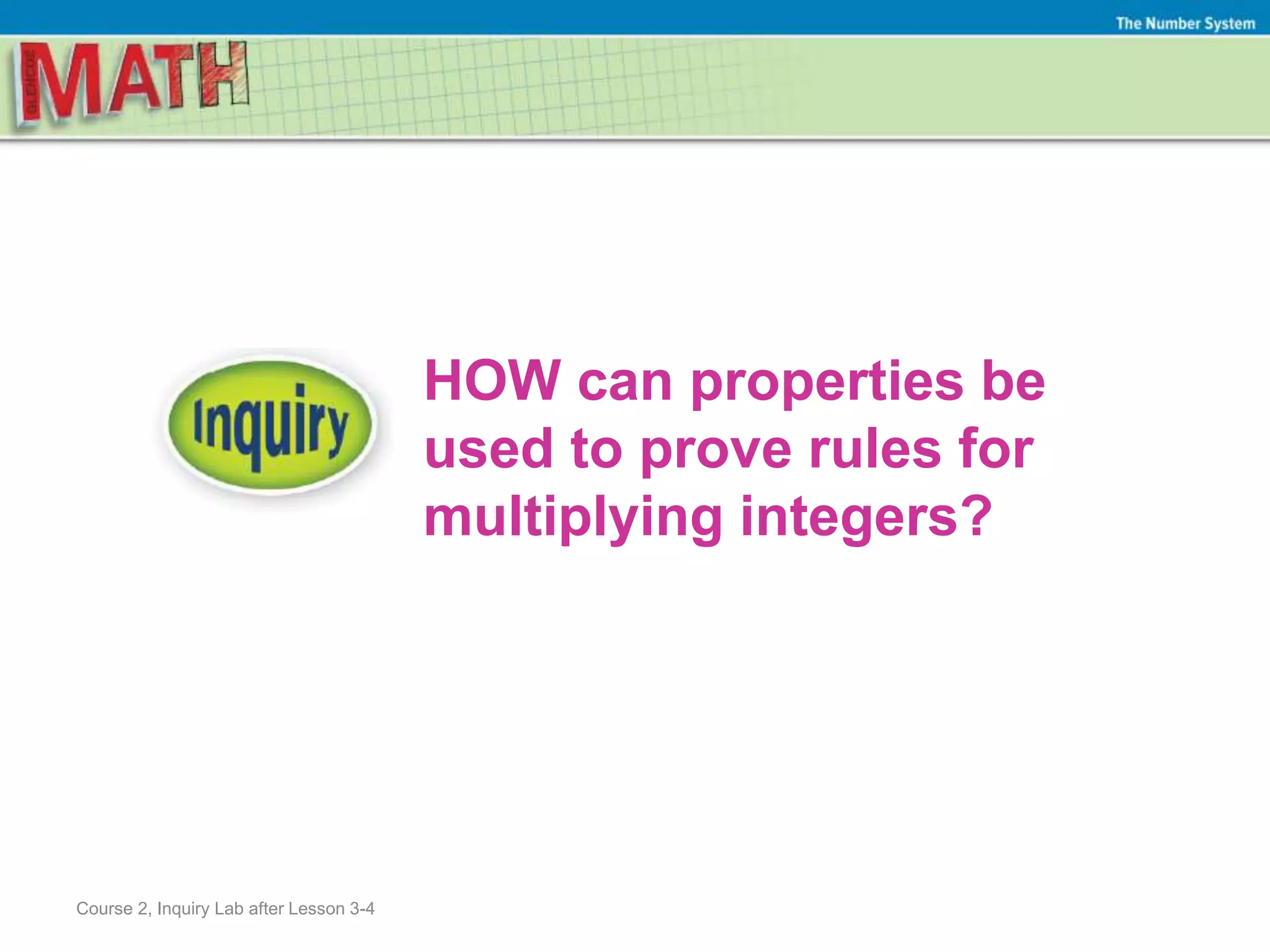 Properties of numbers can be used to prove rules for multiplying integers. The distributive property allows multiplication to be extended from fractions to rational numbers, including products like (-1)(-1)=1. Properties like the distributive property can be applied as strategies to multiply and divide rational numbers. For example, using properties one can prove that 2(-1)=-2 by writing expressions like 0=2+2(-1) and applying the distributive property to show 2(-1) must equal -2.
