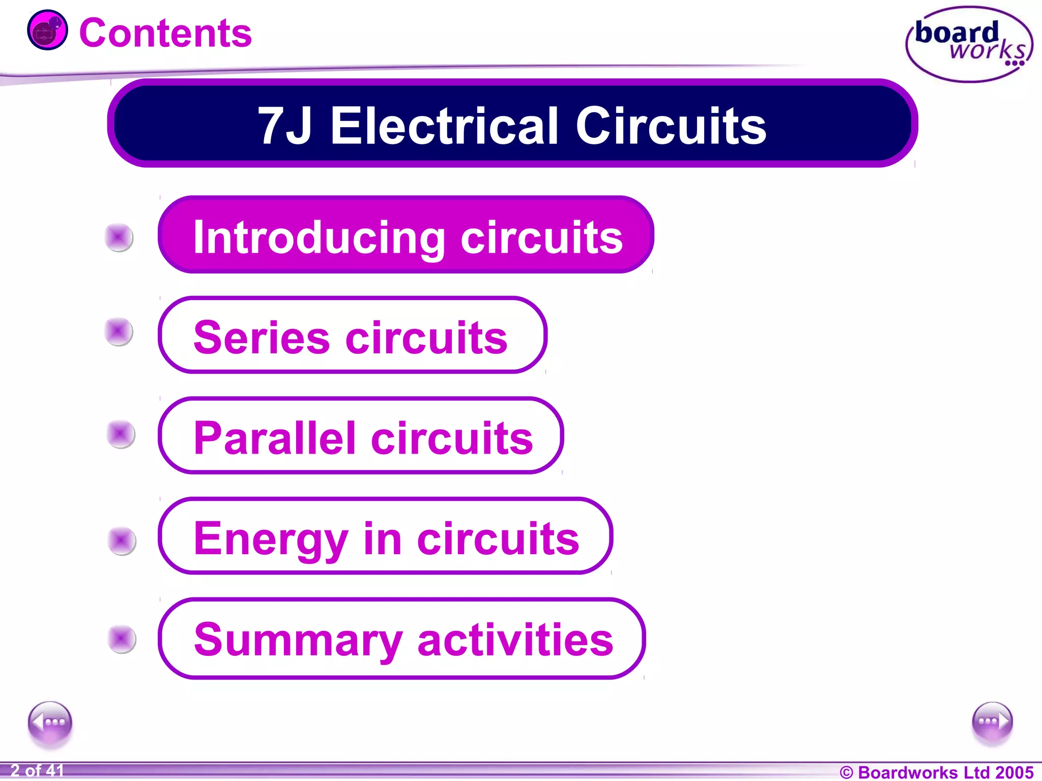 This document is from a KS3 Physics textbook. It provides information on electrical circuits, including introducing series and parallel circuits. Key points covered include: