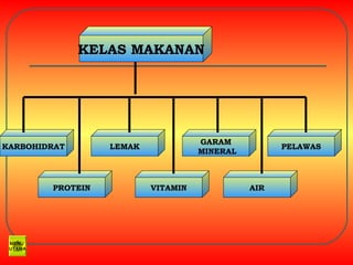 Dokumen ini membahas tentang pentingnya berbagai jenis nutrisi, termasuk karbohidrat, protein, lemak, vitamin, garam mineral, dan air, serta dampak kekurangan masing-masing nutrisi. Nutrisi tersebut berperan krusial dalam memberikan energi, pertumbuhan, serta menjaga kesehatan berbagai fungsi tubuh. Selain itu, dokumen juga menyertakan sumber makanan utama dari setiap kategori nutrisi dan efek negatif yang mungkin terjadi akibat kekurangan.
