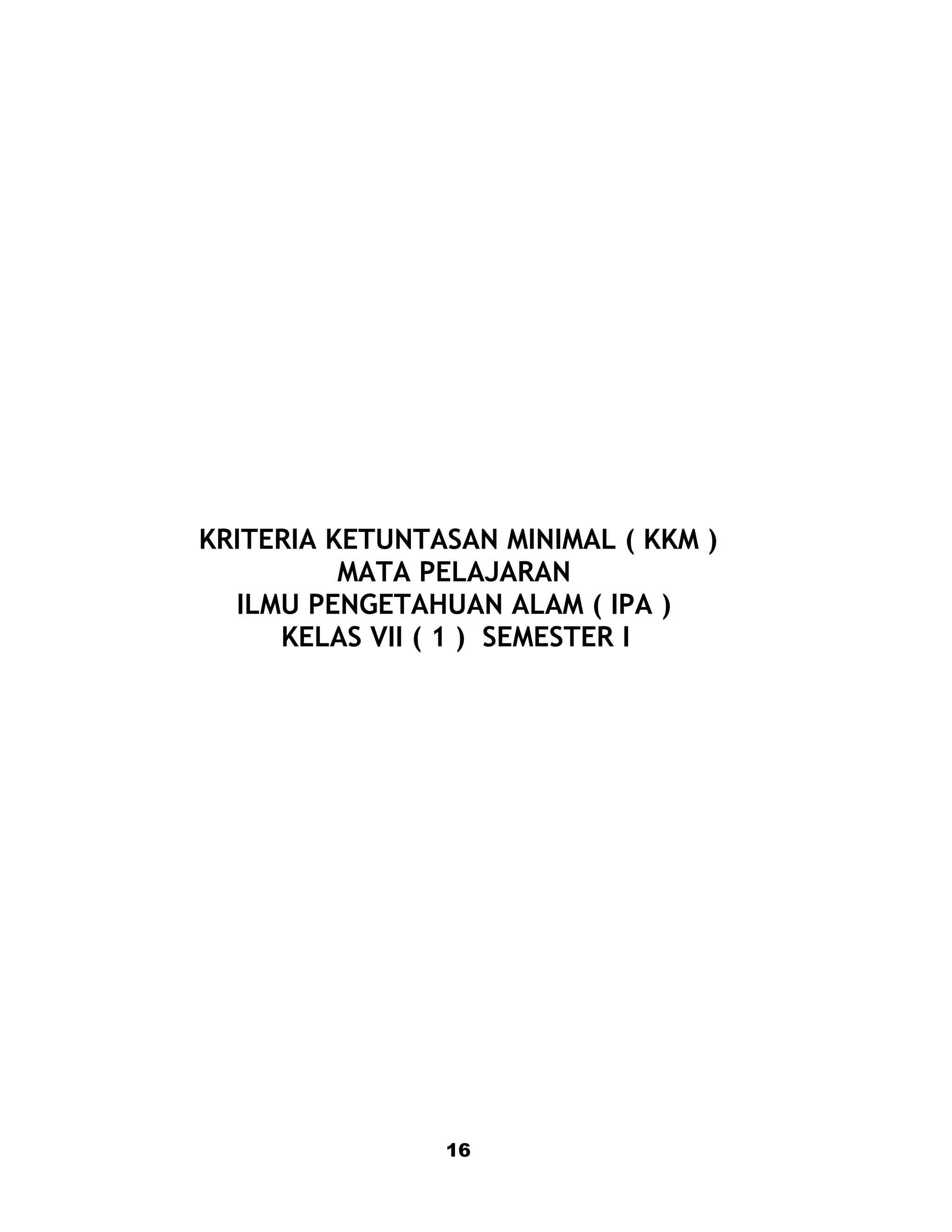 Dokumen tersebut berisi kriteria ketuntasan minimal (KKM) mata pelajaran IPA untuk kelas VII semester I dan II. Terdapat empat kompetensi dasar yang harus dicapai siswa untuk mata pelajaran IPA semester I dan tiga kompetensi dasar untuk semester II beserta indikator dan kriteria penilaian yang harus dicapai untuk mencapai KKM.