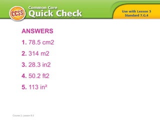 1. The document provides examples of calculating the areas of various shapes, including circles, rectangles, triangles, trapezoids, parallelograms, and composite figures.