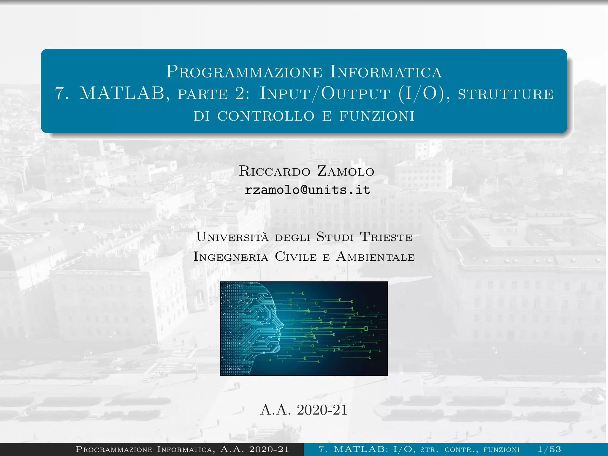 Il documento tratta della programmazione in MATLAB, concentrandosi su funzionalità di input/output, strutture di controllo e funzioni. Vengono descritte funzioni come input, disp e fprintf per gestire l'input dell'utente, la visualizzazione dei dati e l'output formattato. Inoltre, il testo fornisce esempi pratici e esercizi su come manipolare caratteri, stringhe e applicare strutture di controllo come if, switch, while e for.
