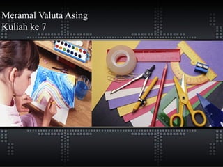 Dokumen ini membahas berbagai metode peramalan valuta asing, termasuk analisis teknikal dan fundamental, serta strategi hedging untuk mengelola risiko valas yang dihadapi perusahaan. Selain itu, dokumen menyentuh dampak kebijakan moneter, defisit neraca perdagangan, dan perubahan kurs terhadap ekonomi, diakhiri dengan pertanyaan-pertanyaan untuk evaluasi pemahaman terkait sistem moneter internasional. Keseluruhan informasi bertujuan untuk memberikan wawasan tentang pengelolaan dan strategi dalam dunia valuta asing dan risiko yang menyertai.