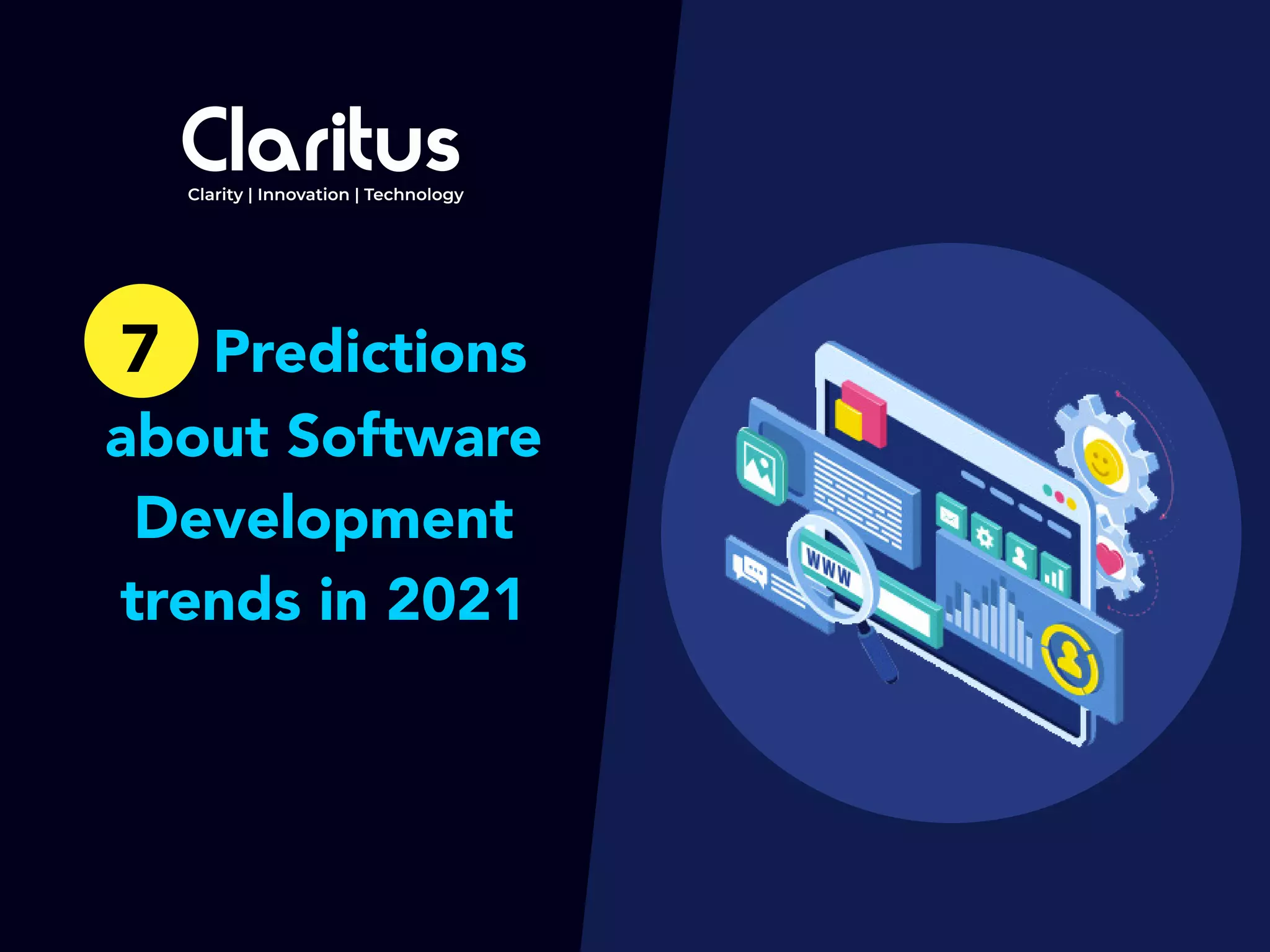 The document outlines seven key predictions for software development trends in 2021, emphasizing the continued importance of native app development, popular frameworks like Angular 2+, React, and Node.js, and the rise of Apache Spark for big data computation. It also highlights the growing traction of Rust as a programming language, the dominance of Java along with Kotlin and Scala, and the significant role of cloud providers like Amazon, Microsoft, and Google. Furthermore, SQL databases are expected to maintain their critical position in the industry due to their transactional guarantees.