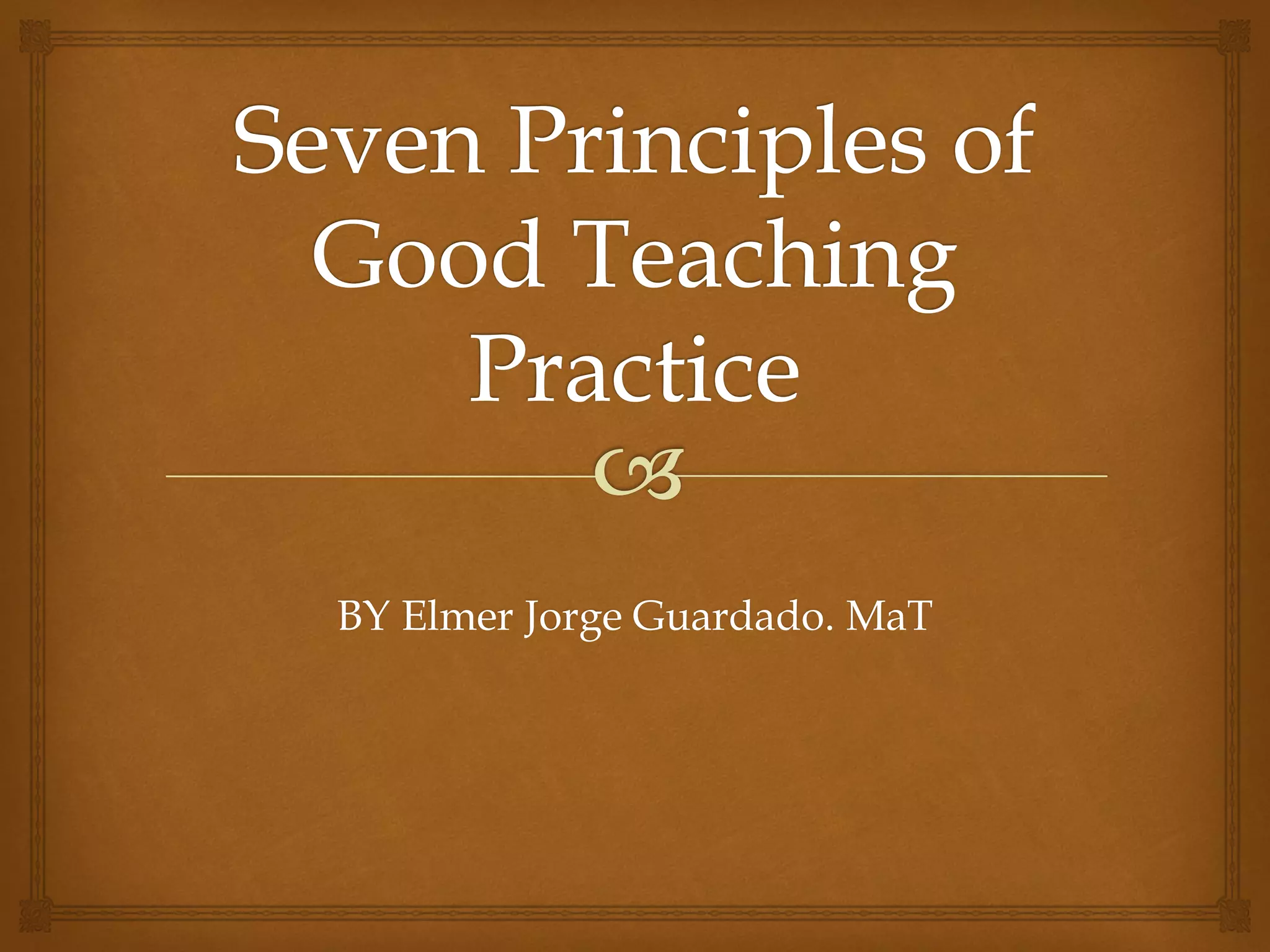 Good teaching practices encourage interaction between students and faculty, collaboration among students, and active learning techniques. They provide prompt feedback to students, emphasize spending time on tasks, communicate high expectations, and respect diversity in learning styles and talents. Frequent student-faculty contact, team-based learning activities, and opportunities for self-assessment and reflection enhance learning outcomes.